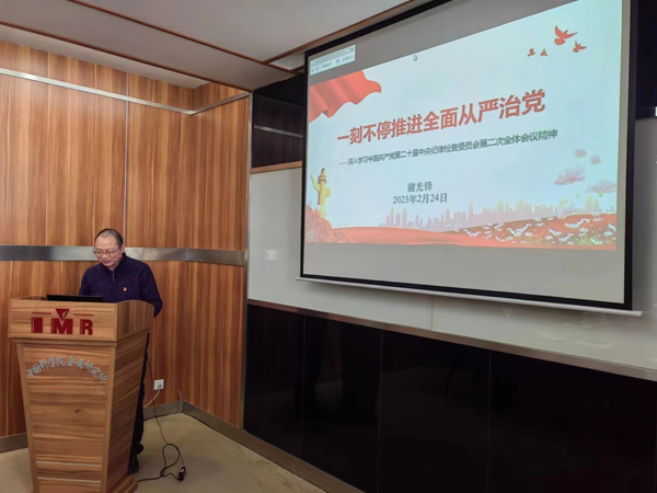 隨后,黨委副書記、紀(jì)委書記謝光鋒作了題為“一刻不停推進(jìn)全面從嚴(yán)治黨”的主題報(bào)告,傳達(dá)學(xué)習(xí)了二十屆中央紀(jì)委二次全會(huì)精神。謝光鋒指出,二十屆中央紀(jì)委二次全會(huì)是全面開啟新時(shí)代新征程關(guān)鍵節(jié)點(diǎn)上召開的一次重要會(huì)議,習(xí)近平總書記發(fā)表重要講話,強(qiáng)調(diào)要站在事關(guān)黨長(zhǎng)期執(zhí)政、國(guó)家長(zhǎng)治久安、人民幸福安康的高度,把全面從嚴(yán)治黨作為黨的長(zhǎng)期戰(zhàn)略、永恒課題,始終堅(jiān)持問(wèn)題導(dǎo)向,保持戰(zhàn)略定力,發(fā)揚(yáng)徹底的自我革命精神,永遠(yuǎn)吹沖鋒號(hào),把嚴(yán)的基調(diào)、嚴(yán)的措施、嚴(yán)的氛圍長(zhǎng)期堅(jiān)持下去,把黨的偉大自我革命進(jìn)行到底。要把學(xué)習(xí)貫徹習(xí)近平總書記重要講話精神和中央紀(jì)委二次全會(huì)精神與學(xué)習(xí)貫徹黨的二十大精神結(jié)合起來(lái),把握精神實(shí)質(zhì),學(xué)懂弄通做實(shí),提高一體推進(jìn)不敢腐、不能腐、不想腐的能力和水平。